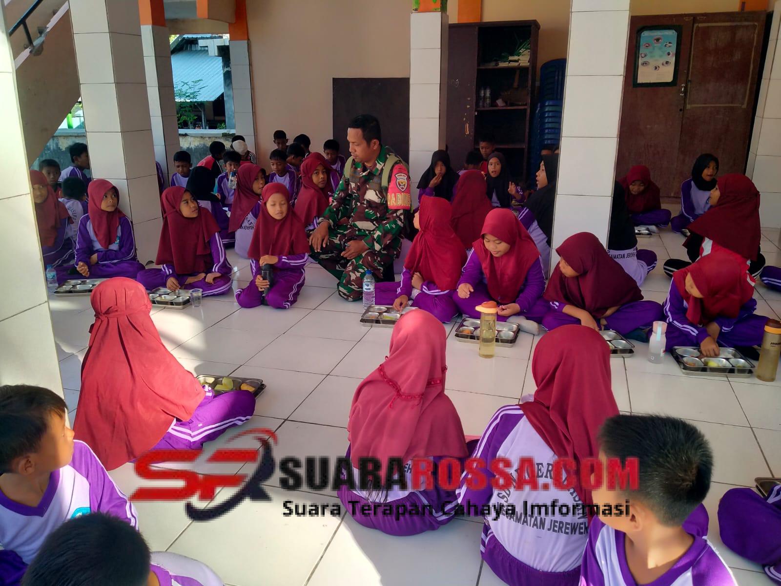 Sumbawa Barat, NTB – Anggota Koramil 1628-05/Jereweh, Babinsa Desa Dasan Anyar Serda Yakub, melaksanakan pendampingan kegiatan Program Makan Bergizi Gratis (MBG) di SDN Dasan, Dusun Dasan, Desa Dasan Anyar, Kecamatan Jereweh, Kabupaten Sumbawa Barat, pada Rabu (17/12/2025), pukul 07.30 Wita.