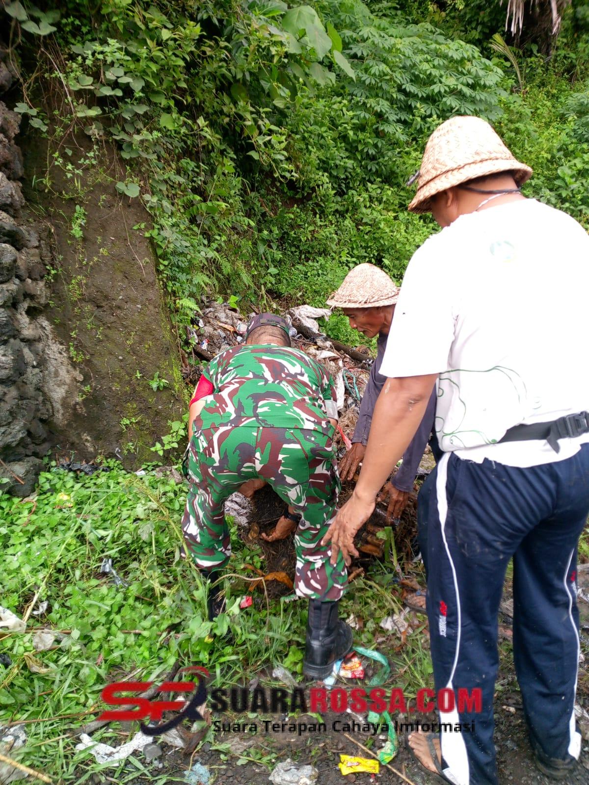 Gianyar – Blahbatuh, Selasa (16/12/2025) Tunjukan Kepedulian, Babinsa Desa Saba Koramil 1616-04/Blahbatuh Pelda I Wayan Yasa bersama Bhabinkamtibmas dan masyarakat setempat melaksanakan kegiatan gotong royong berupa penimbunan jalan yang jebol secara manual serta pembersihan titik gorong-gorong yang tersumbat akibat tergerus derasnya aliran air hujan.