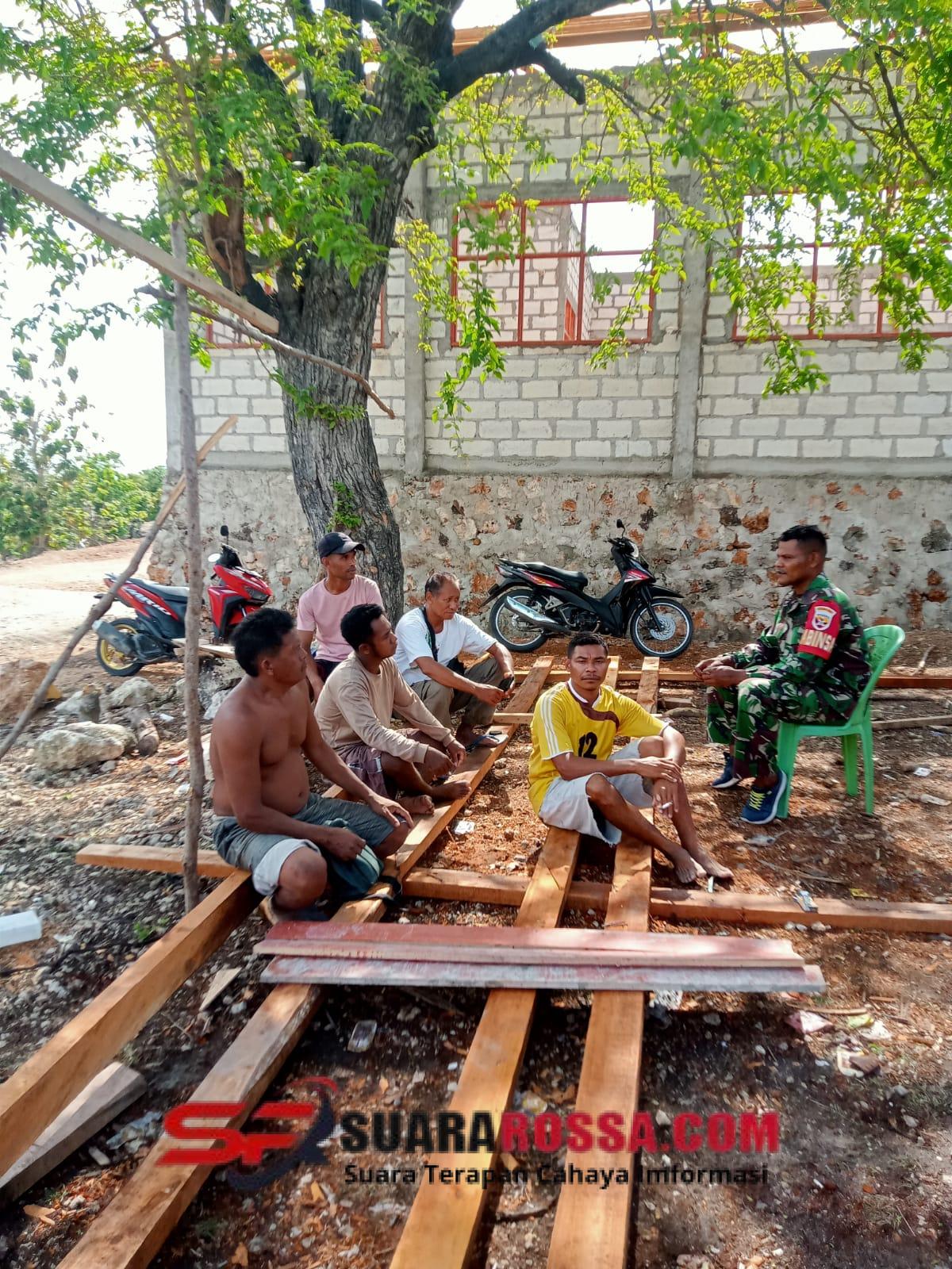 Kegiatan yang dimulai pada pukul 12.30 WITA tersebut difokuskan pada pemantauan pekerjaan pembangunan Sekolah SMA SATAP 1 Rote Barat Daya. Dalam kesempatan itu, Babinsa tidak hanya melakukan pengawasan, tetapi juga turut membantu para tukang yang sedang bekerja serta memberikan motivasi agar tetap semangat menyelesaikan pembangunan sekolah tersebut.