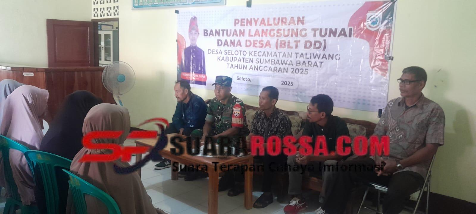 Sumbawa Barat, NTB – Babinsa Koramil 1628-01/Taliwang, Sertu Wildansyah, melaksanakan pendampingan kegiatan penyaluran Bantuan Langsung Tunai Dana Desa (BLT DD) kepada masyarakat Desa Seloto, Kecamatan Taliwang, Kabupaten Sumbawa Barat, Kamis (18/12/2025).