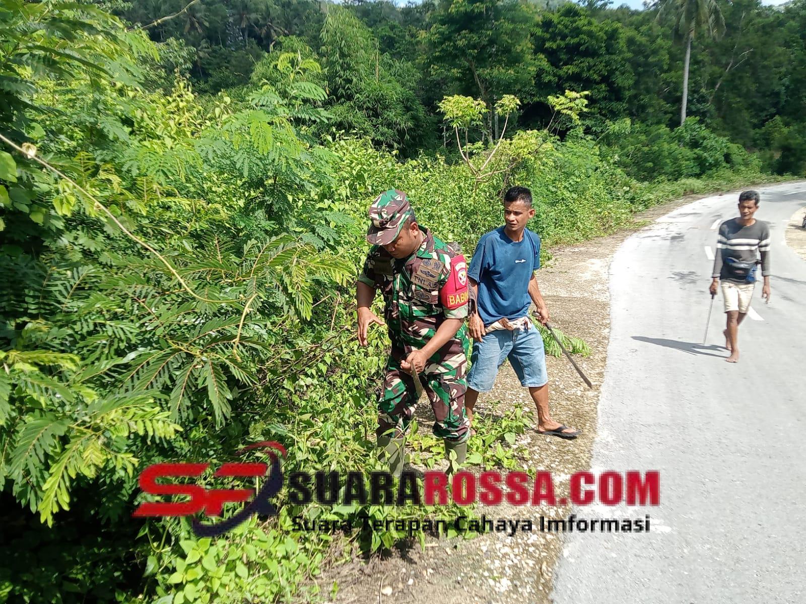 • Bersama Warga, Serka Ramli Bersihkan Semak Belukar di Jalan Desa