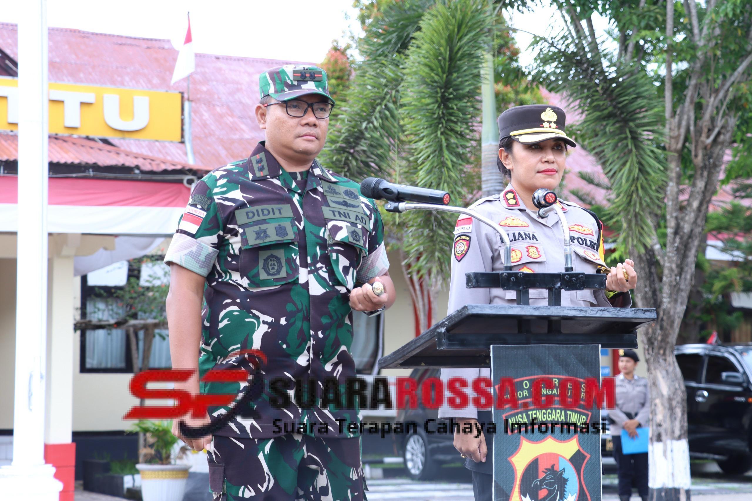NTT–Kefamenanu., Sebagai bentuk nyata sinergitas TNI–Polri di Kabupaten Timor Tengah Utara, Rabu, 24 Desember 2025, bertempat di Lapangan Mapolres TTU, Jalan Prof. Dr. W.Z. Yohanes, Kelurahan Kefamenanu Tengah, Kecamatan Kota Kefamenanu, Kabupaten TTU, Komandan Kodim 1618/TTU Letkol Arm Didit Prasetyo Purwanto, S.E., bersama Kapolres TTU AKBP Eliana Papote, S.I.K., M.M., memimpin langsung Apel Gelar Pasukan dan pengecekan kesiapan pengamanan VVIP serta pengamanan Natal dan Tahun Baru (Nataru). Apel tersebut diikuti oleh personel Kodim 1618/TTU dan personel Polres TTU.