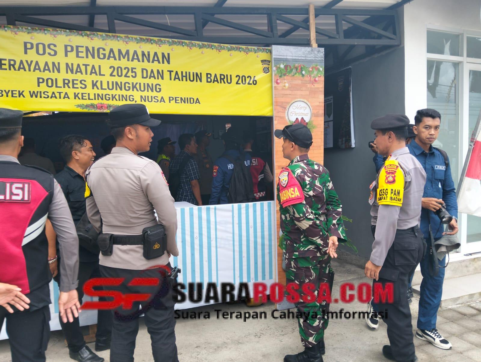 Klungkung,- Danramil 1610-04/Nusa Penida Mayor Inf Suparno Hadi bersama Kapolsek Nusa Penida mendampingi Kapores Klungkung melaksanakan kunjungan serta peninjauan di Posko Terpadu Nataru di wilayah kecamatan Nusa Penida, Rabu ( 24/12/25 ).