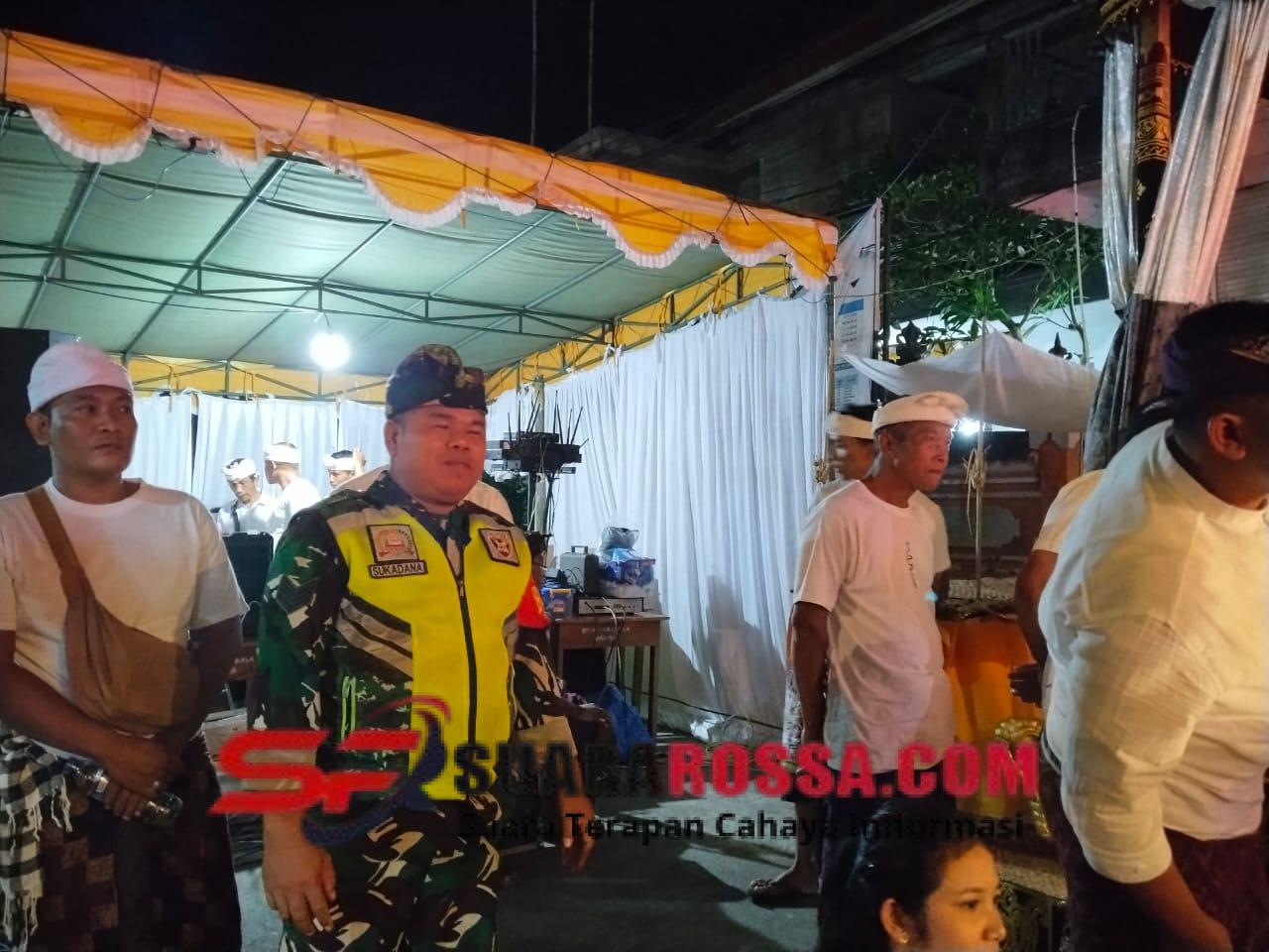 Klungkung,- Babinsa Getakan Koramil 1610-02/Banjarangkan Serma Wayan Sukadana bersama Bhabinkamtibmas dan pecalang serta anggota Polsek Banjarangkan melaksanakan pengawalan dan pengamanan pementasan calonarang, Kamis ( 25/12/25 ) malam.