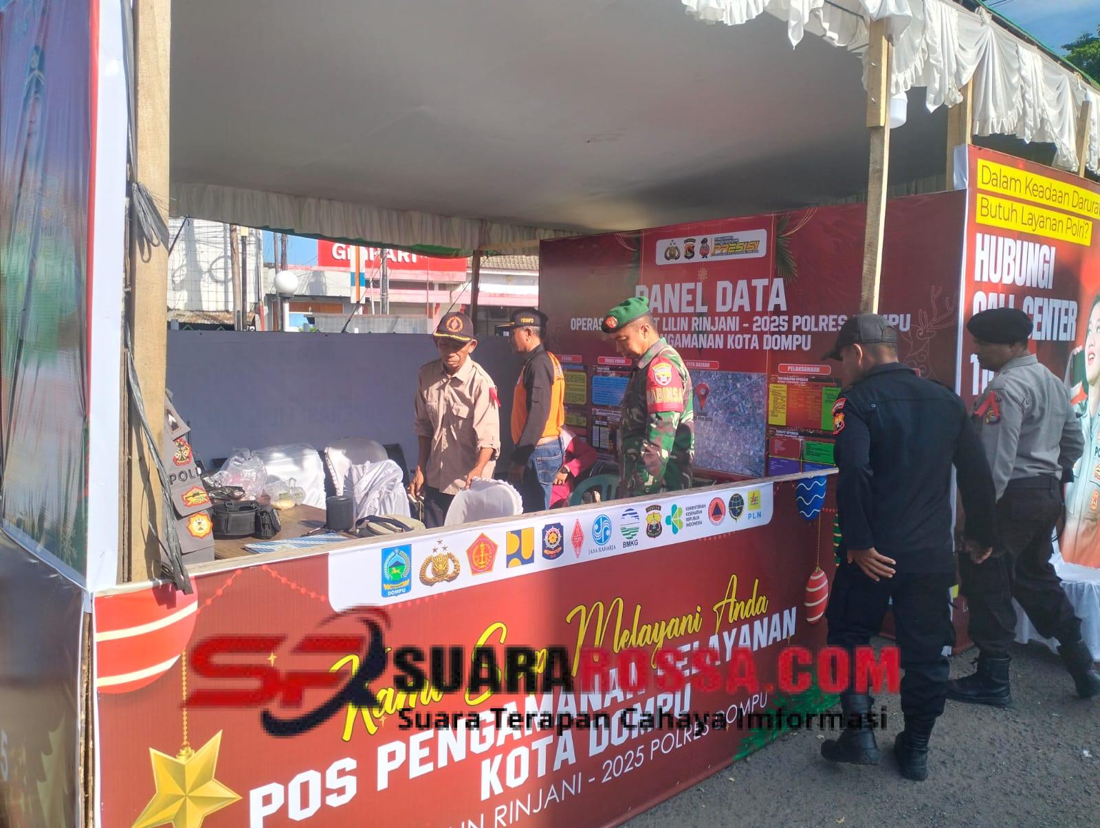 Adapun personel yang terlibat dalam Pos Pam Pelayanan Kota Dompu terdiri dari 2 personel TNI Kodim 1614/Dompu, 10 personel Polres Dompu, 2 personel Brimob, 2 personel Dinas Perhubungan, 2 personel Senkom, 2 personel Orari, 2 personel RAPI, serta 2 personel Satpol PP. Seluruh personel hadir lengkap dan siap melaksanakan tugas sesuai fungsi masing-masing.