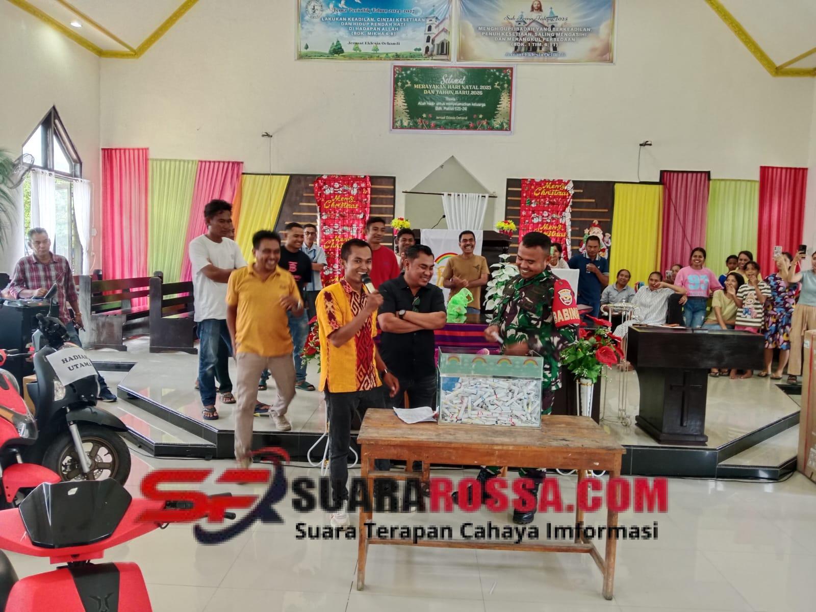 Rote Ndao – Dalam rangka mempererat hubungan silaturahmi dan kebersamaan dengan masyarakat binaan, Babinsa Koramil 1627-03/Batutua menghadiri kegiatan Penarikan Undian Berhadiah Spesial Natal 2025 yang diselenggarakan di Gereja Eklesia Oehandi, Desa Oehandi, Kecamatan Rote Barat Daya, Kabupaten Rote Ndao, Kamis (25/12/2025).