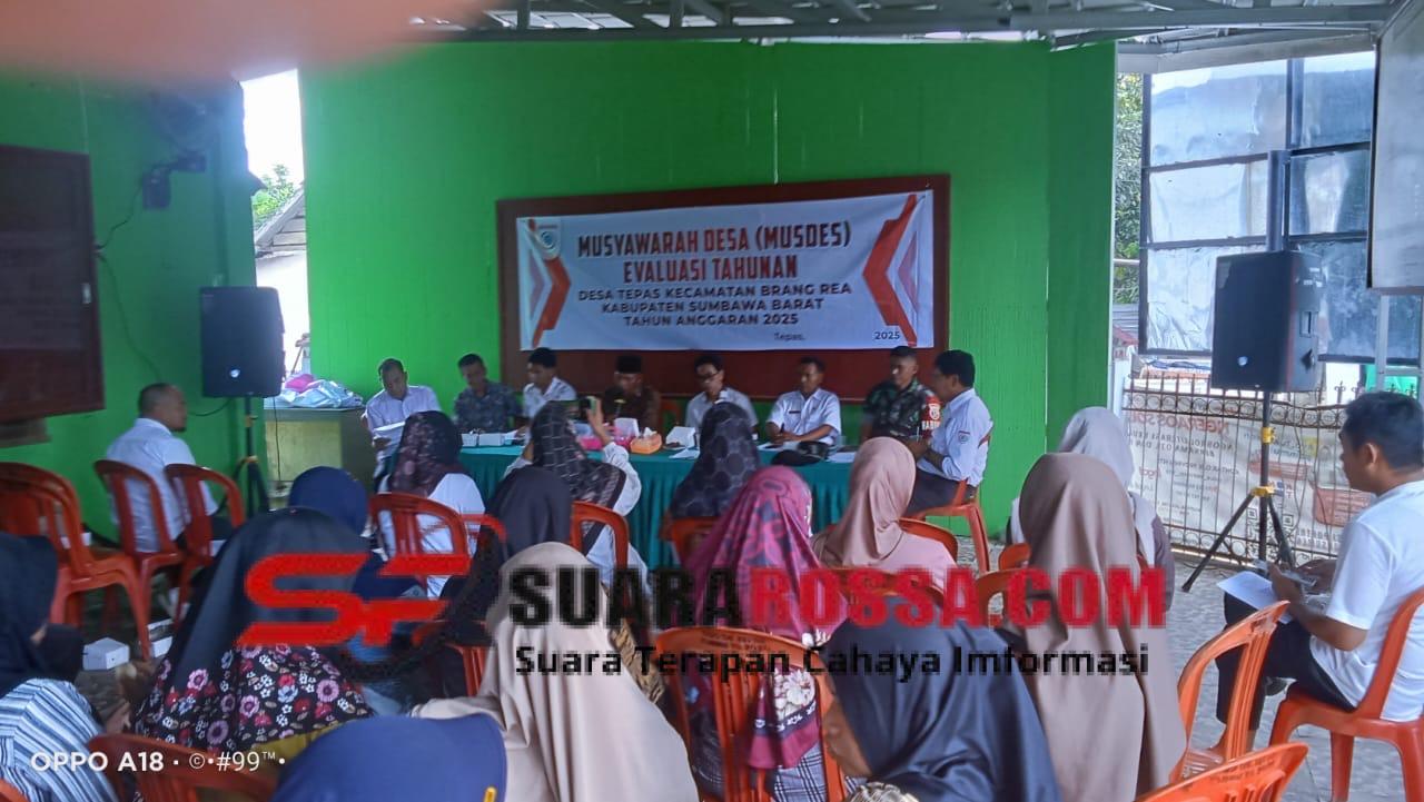 Sumbawa Barat, NTB — Babinsa Desa Tepas Koramil 1628-01/Taliwang, Serda Rusdiansyah, menghadiri kegiatan Musyawarah Desa (MUSDES) Evaluasi Tahunan Tahun Anggaran 2025 yang diselenggarakan Pemerintah Desa Tepas, Rabu (24/12/2025).