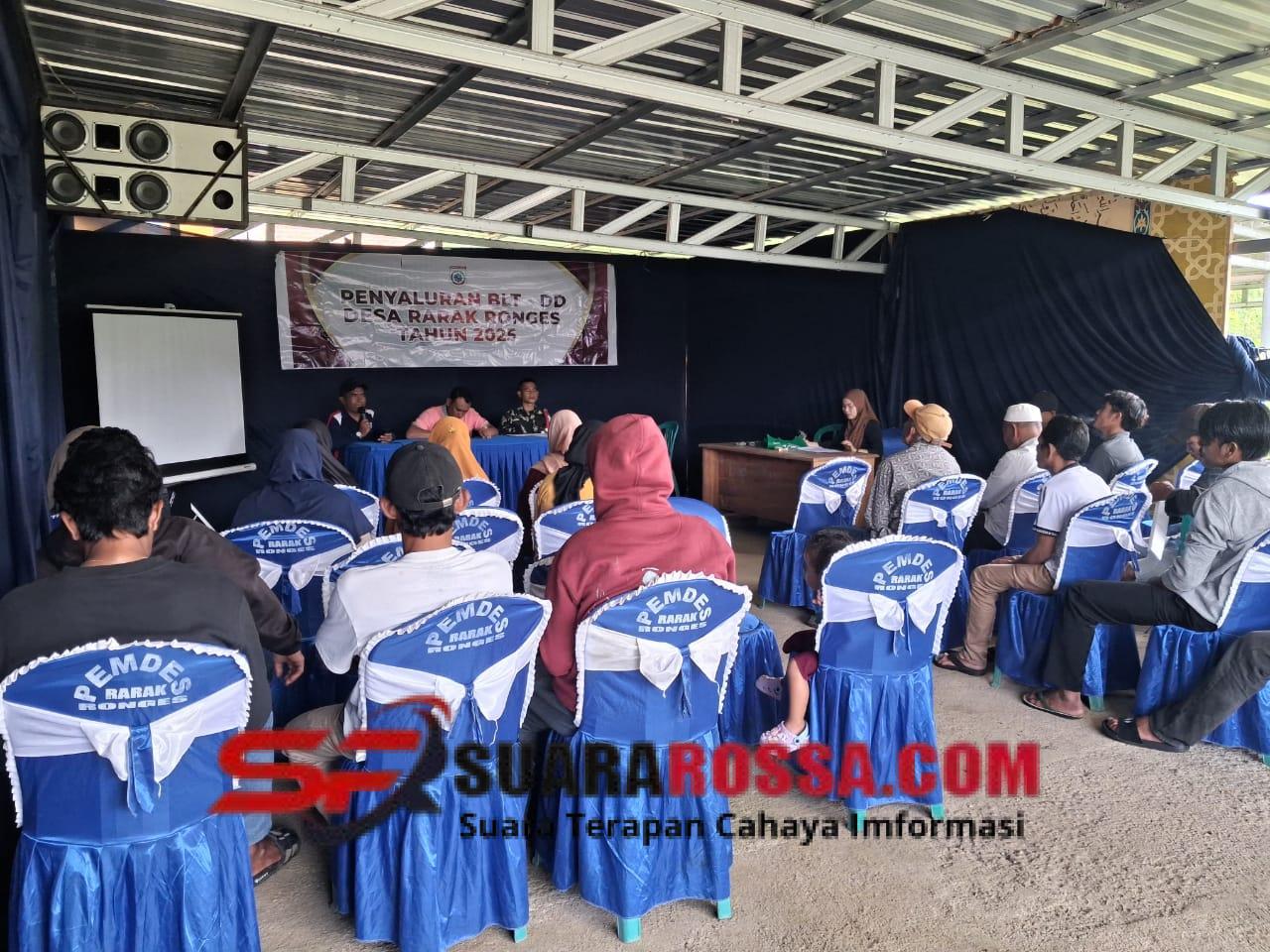 Rangkaian kegiatan diawali dengan pembukaan, pembacaan doa, sambutan Kepala Desa Rarak Ronges, dan dilanjutkan dengan pembagian BLT DD secara simbolis kepada perwakilan penerima bantuan.