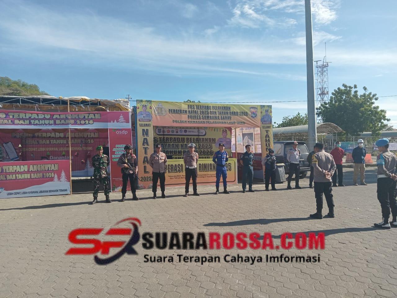 Sumbawa Barat, NTB – Dalam rangka pengamanan dan pelayanan Natal Tahun 2025 serta Tahun Baru 2026, apel gabungan Posko Terpadu dilaksanakan di Pelabuhan Poto Tano, Kecamatan Poto Tano, Kabupaten Sumbawa Barat, Kamis (25/12/2025).