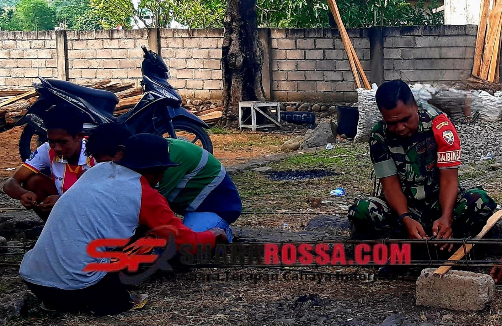 Dalam kegiatan tersebut, Serka Rifai ikut membantu warga mengikat kawat yang digunakan untuk pembangunan fasilitas desa. Kehadiran Babinsa langsung di lapangan memberikan semangat tambahan bagi warga yang sedang bekerja.