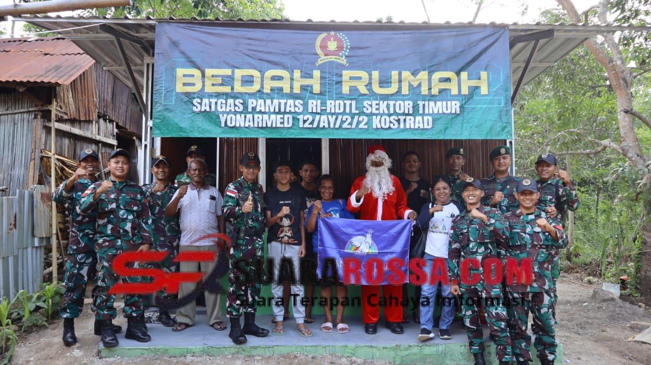 Satgas Pamtas RI–RDTL Sektor Timur Yonarmed 12 Kostrad melaksanakan kegiatan bedah rumah terhadap rumah milik Ibu Maria Bui Mali (70 tahun), warga Lidak, Kecamatan Atambua Selatan, Kabupaten Belu, Nusa Tenggara Timur. Kegiatan ini dilaksanakan sebagai hadiah Natal bagi masyarakat sekaligus menjadi wujud kepedulian Satgas Pamtas terhadap warga lanjut usia di wilayah perbatasan. Sabtu (27/12/2025).