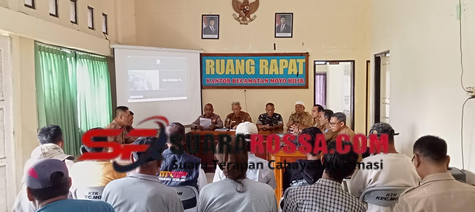 Kegiatan yang berlangsung di ruang rapat Kantor Camat Moyo Hilir ini dipimpin langsung oleh Camat Moyo Hilir, Widodo, S.St., S.Mi., serta diikuti sekitar 25 peserta dari unsur Forkopimcam, BKPH Batu Lanteh, para kepala desa se-Kecamatan Moyo Hilir, dan masyarakat yang terlibat langsung dalam perawatan tanaman.