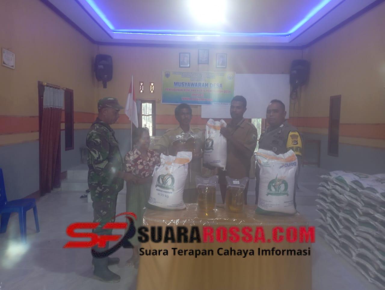 Kegiatan yang berlangsung mulai pukul 09.00 Wita hingga selesai, Babinsa Koramil 1621-02/Amanuban Tengah Sertu Otnial Nenobesi bersama Bhabinkamtibmas melaksanakan monitoring wilayah dan komunikasi sosial (Komsos) sekaligus menghadiri kegiatan pembagian bantuan pangan dari BULOG kepada masyarakat Desa Taebesa, Kecamatan Amanuban Tengah.
