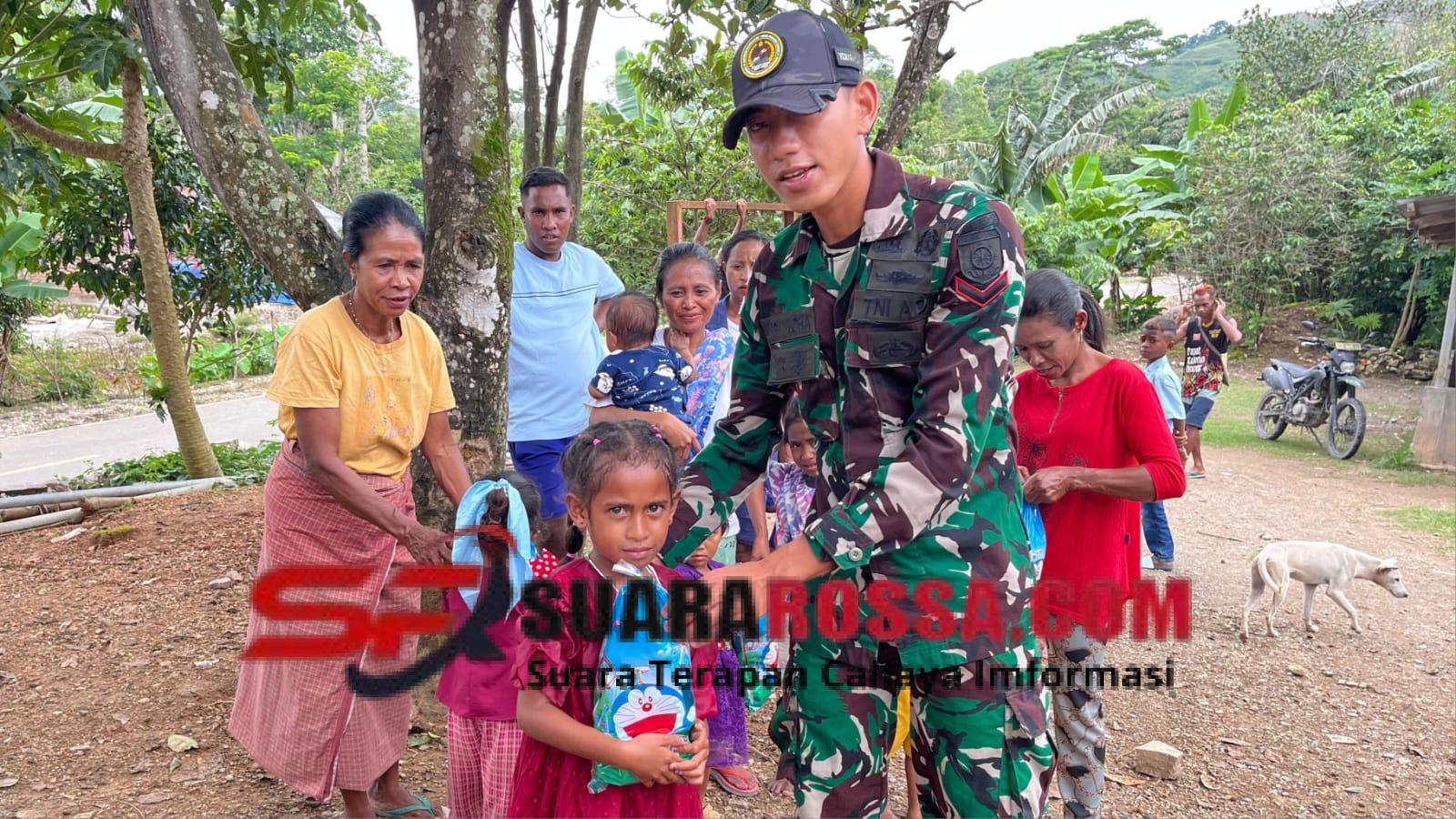 • Sentuhan Kasih Natal di Perbatasan, Satgas Pamtas Yonarmed 12 Kostrad Berbagi Hadiah