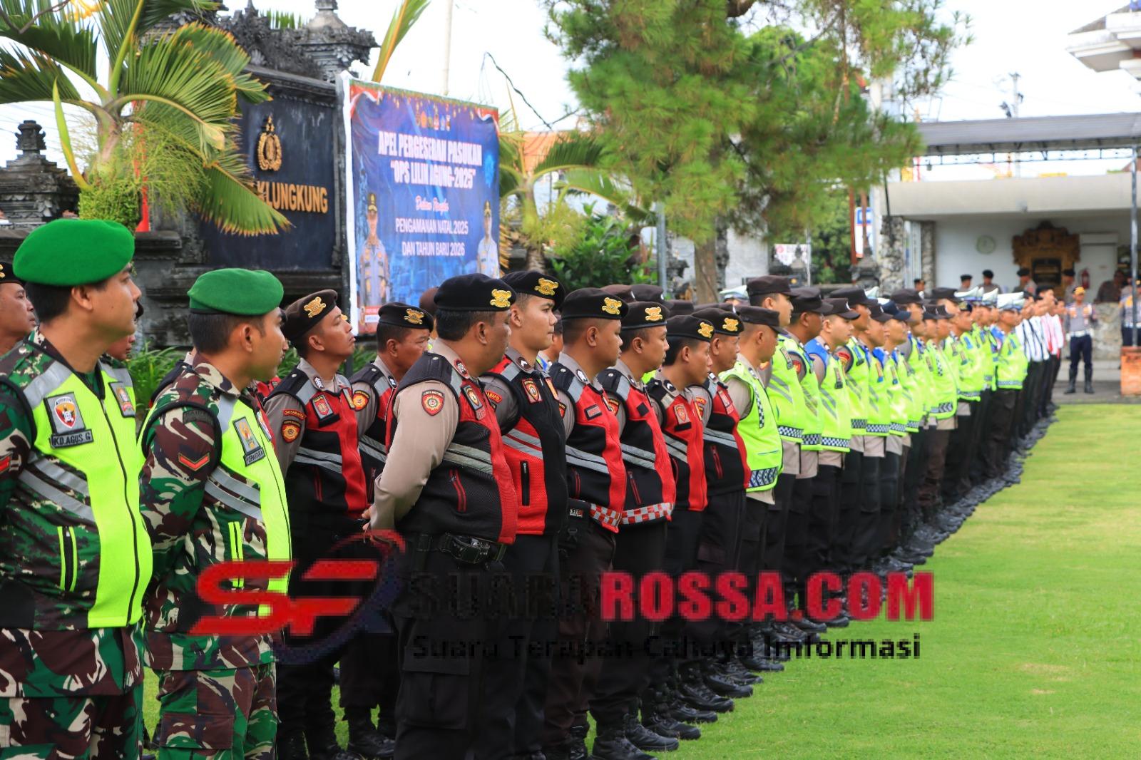 Sinergitas tersebut terlihat pagi ini saat digelarnya Apel Pergeseran Pasukan Pengamanan Perayaan Pergantian Tahun Baru 2026 Lapangan Apel Polres Klungkung, Kelurahan Semarapura Tengah Kecamatan/Kabupaten Klungkung, Rabu ( 31/12/25 ).