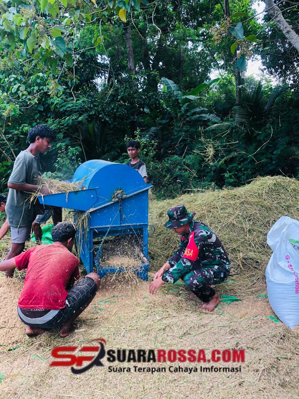 Kegiatan tersebut dilaksanakan sebagai bentuk kepedulian Babinsa terhadap masyarakat desa binaan, khususnya dalam mendukung sektor pertanian dan ketahanan pangan. Dalam kesempatan ini, Babinsa turut terjun langsung membantu warga melakukan proses rontok padi guna mempercepat pekerjaan serta meringankan beban petani.