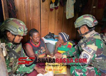 TTU – Satgas Pamtas RI–RDTL Sektor Barat Yonarhanud 2 Kostrad melalui Pos Naekake dan Pos Nelu melaksanakan kegiatan kolaborasi pembagian sembako bersama Kodim 1618/TTU kepada warga Desa Na...