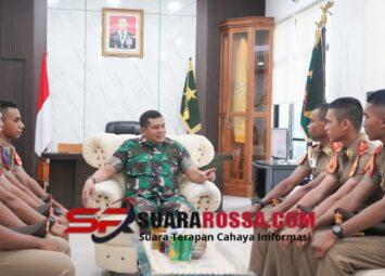 Danrem 161/Wira Sakti Brigjen TNI Hendro Cahyono yang di dampingi Kasrem 161/Wira Sakti Kolonel Inf Roy Hansen Jongguran Sinaga, S.Sos. Kasipers Kasrem 161/WS, Kolonel Inf. Ari Sunu Kuncoro, M.Tr (Ha...