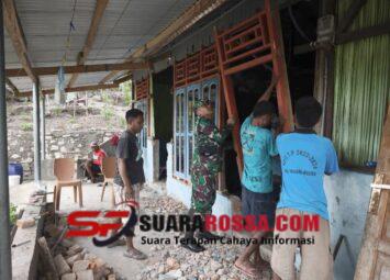 SATGASTER KODIM 1605/BELU Sebagai wujud kebersamaan dan kepedulian kepada masyarakat di wilayah binaan, Anggota Satgaster Kodim 1605/Belu Pos Lakus bergotong royong membantu merehab rumah warga memban...
