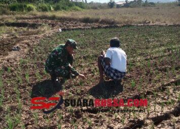 SUMBA TENGAH – Babinsa Koramil 03/Katikutana Kodim 1613/Sumba Barat, Serka Masrin, melaksanakan kegiatan Komunikasi Sosial (Komsos) dengan para petani bawang di Desa Manurara, Kecamatan Katikuta...