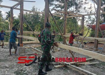 NTT – Sumba Timur. Babinsa Koramil 04/Tabundung Kodim 1601/Sumba Timur, Sertu M. Jaini bersama masyarakat Desa Billa melaksanakan kegiatan gotong royong membangun rumah milik Bapak Dela di Desa ...