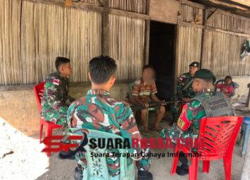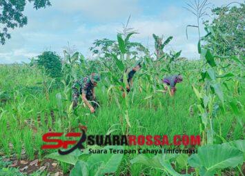 SUMBA TENGAH — Babinsa Koramil 03/Katikutana Kodim 1613/Sumba Barat, Sertu Jaharudin, melaksanakan kegiatan komunikasi sosial (Komsos) bersama warga di area kebun padi ladang sekaligus membantu memb...
