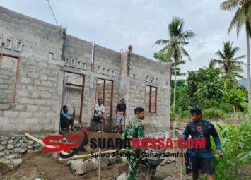 NTT-SIKKA. Babinsa Koramil 1603-05/Bola Kodim 1603/Sikka, Pratu Renaldo Mario, melaksanakan kegiatan gotong royong pembangunan rumah bersama masyarakat Desa Watukrus, Kecamatan Bola, Kabupaten Sikka, ...