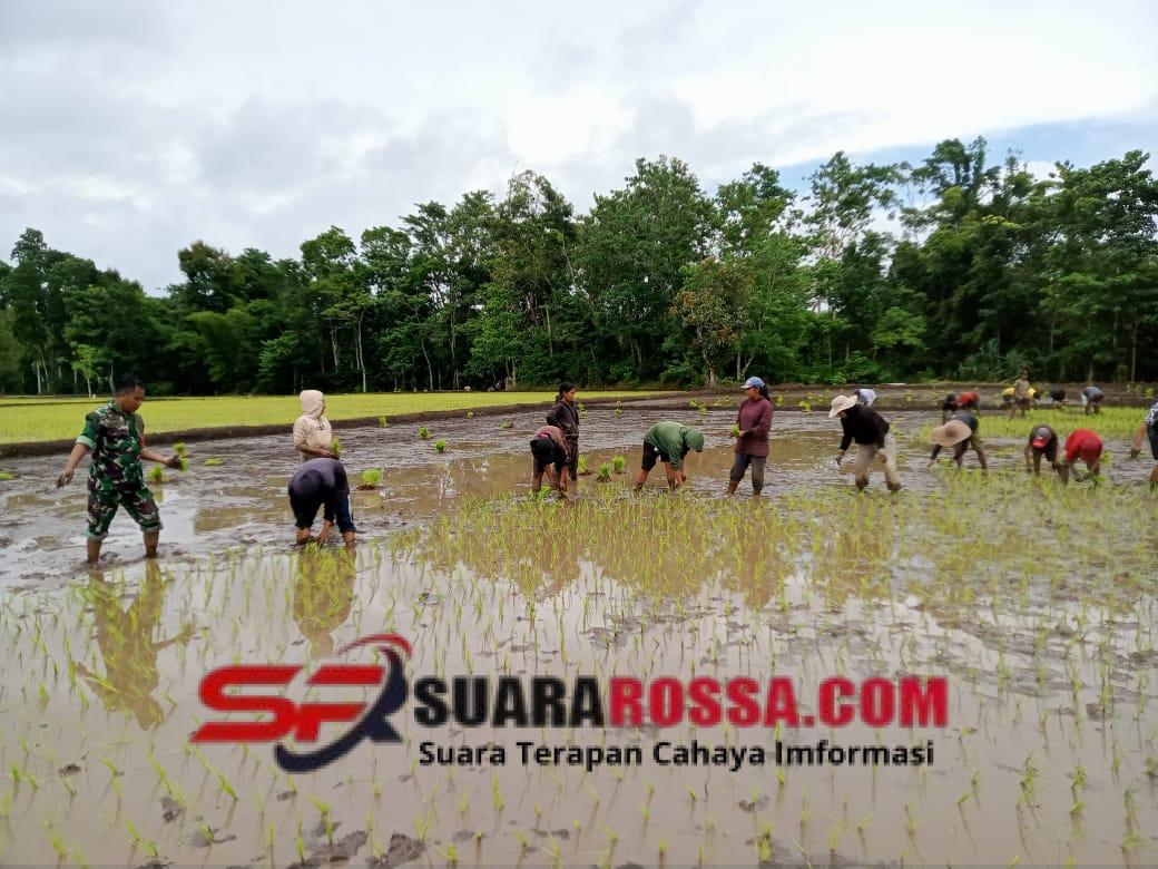 Para petani Desa Sodana menyambut baik kehadiran Babinsa yang selalu aktif mendampingi mereka, mulai dari penyiapan lahan hingga proses penanaman.