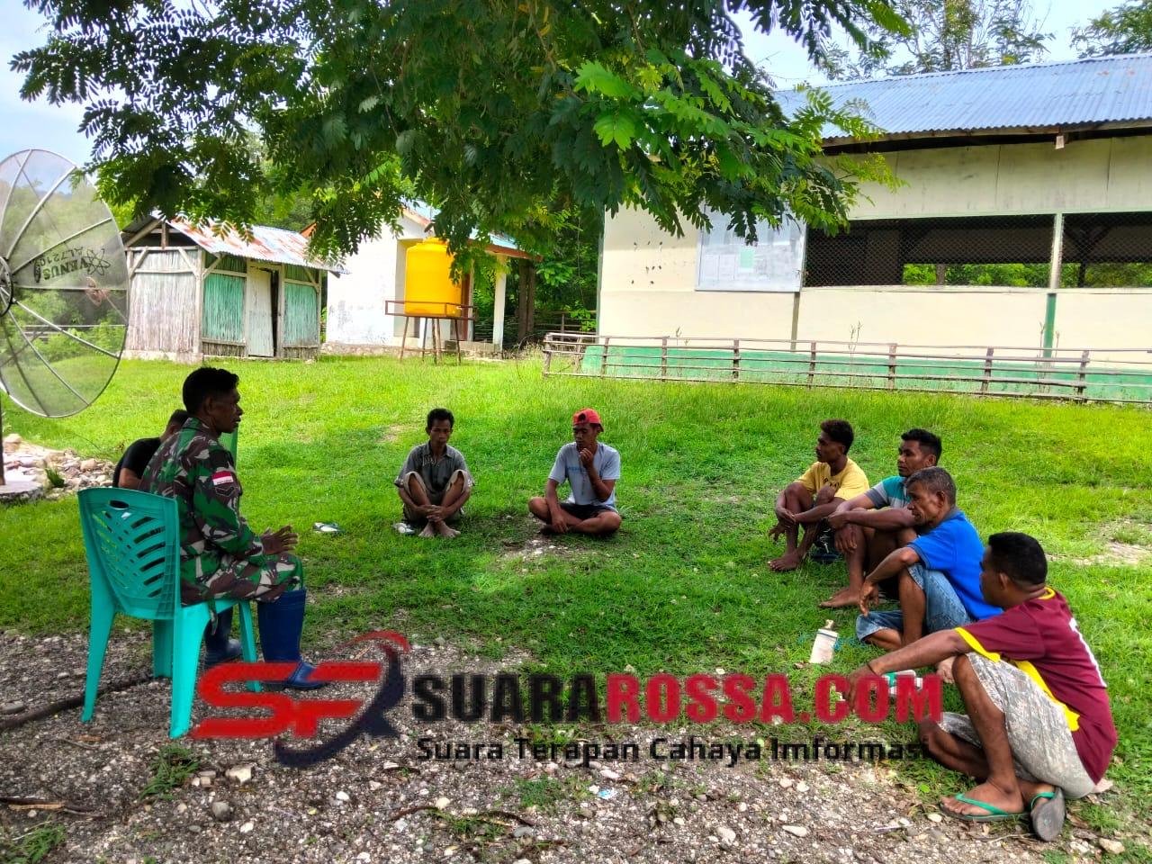 Sertu Francisco Gusmao berdialog dengan warga setempat secara santai dan persuasif.
