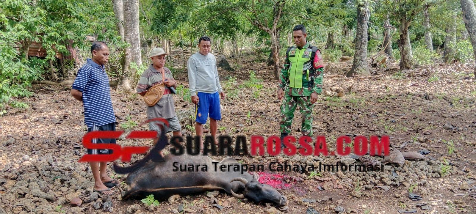 Rote Ndao – Babinsa Koramil 1627-03/Batutua bersama pemerintah desa dan tokoh masyarakat memfasilitasi penyelesaian permasalah pembunuhan seekor sapi yang masuk ke dalam kebun warga di Desa Saindule, Kecamatan Batutua, Kab