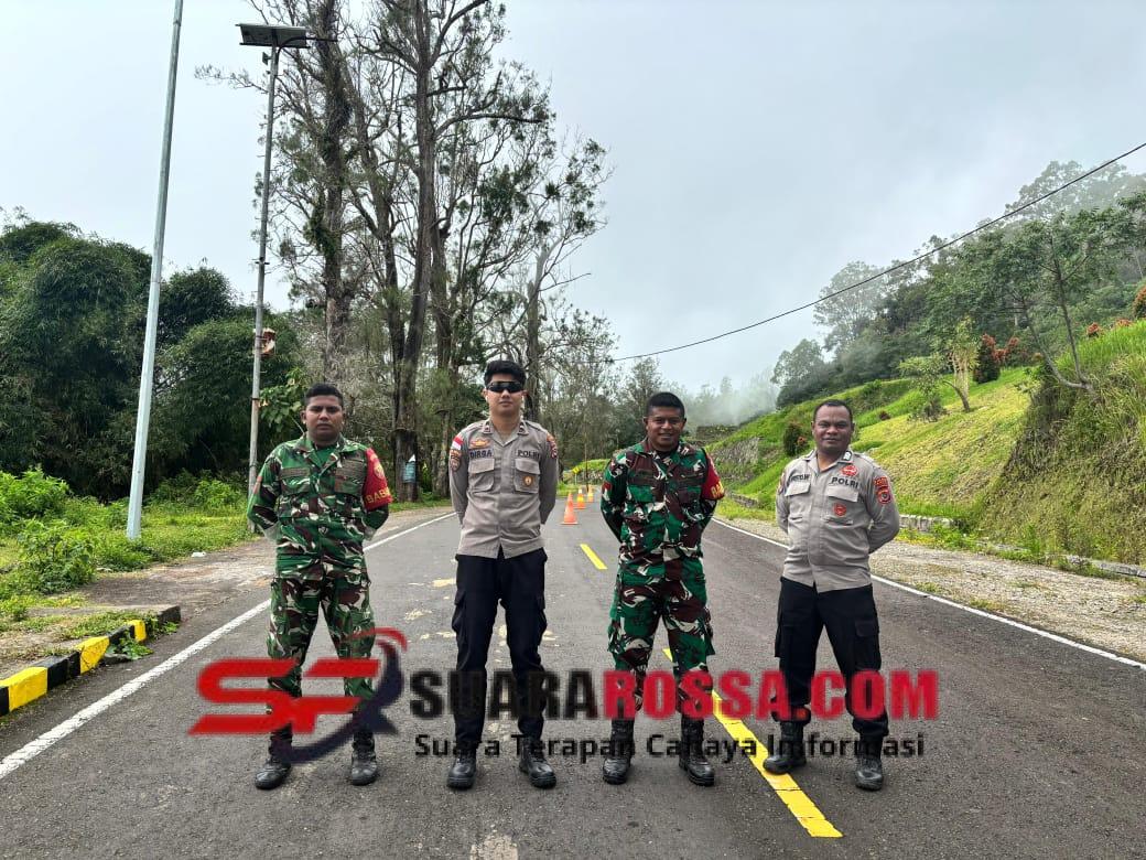 Ende, – Babinsa Koramil 1602-02/Wolowaru, Praka Umar dan Pratu Haris Liga, bersama personel Polsek Wolowaru, Bripka Yohanes K. Woghe dan Bripda M. Dirga Saputra Indra Dewa, melaksanakan kegiatan pengamanan Objek Vital Taman Nasional Kelimutu (TNK) di Desa Pemo, Kecamatan Kelimutu, Kabupaten Ende, pada Sabtu (3/1) mulai pukul 07.00 WITA hingga selesai.