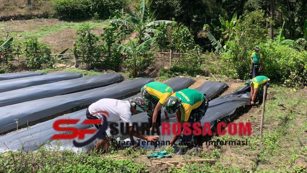 Personel Satgas bersama masyarakat bergotong royong membersihkan lahan serta membuat bedengan sebagai media tanam tomat agar tanaman dapat tumbuh optimal dan hasil panen meningkat. Kehadiran personel pos disambut antusias oleh warga yang turut bekerja bersama dengan penuh semangat kebersamaan.