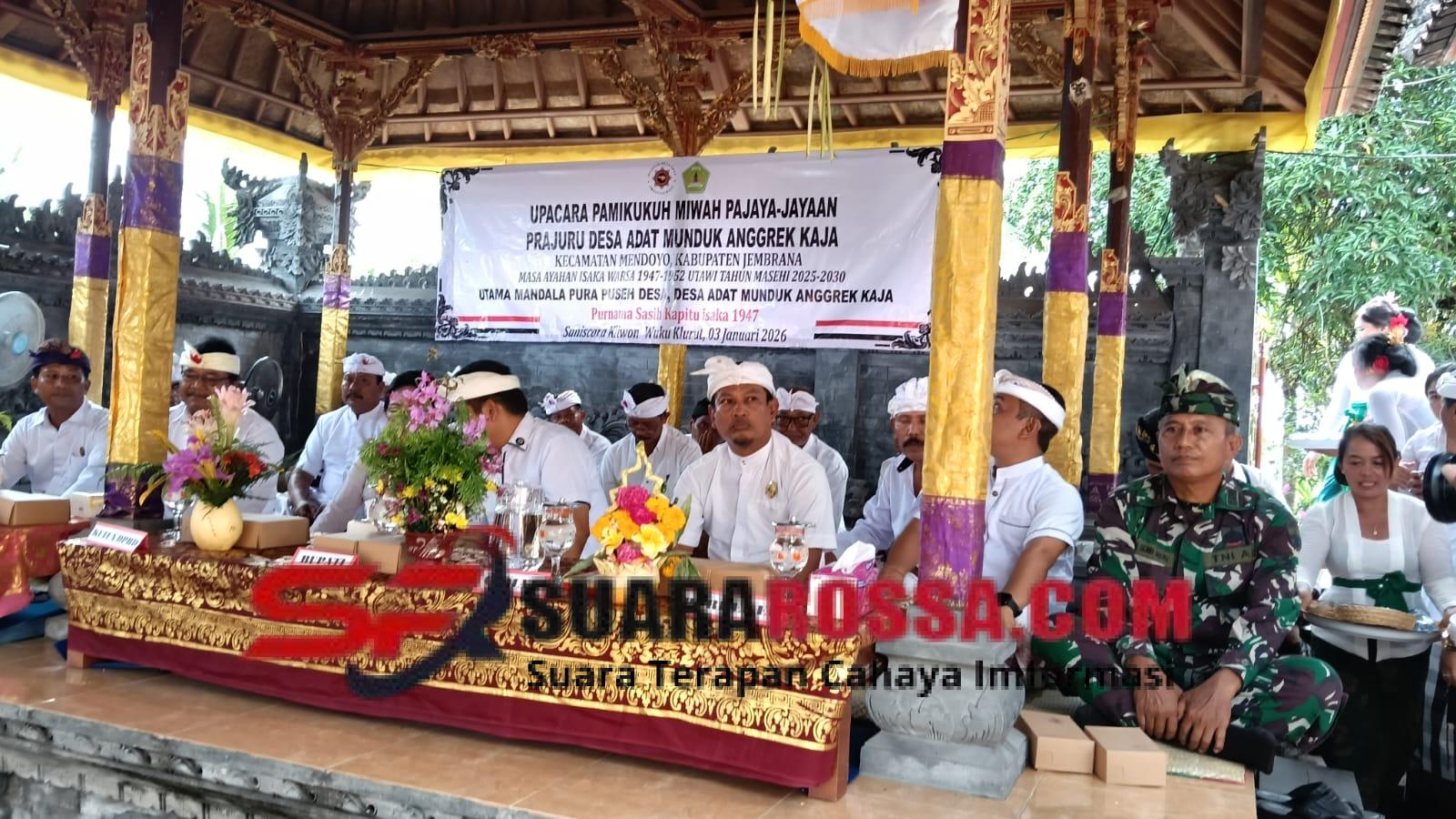 JEMBRANA – Danramil 1617-02/Mendoyo, Kapten Inf. Made Sujana Arianta, menghadiri upacara pengukuhan (Ngadegan) Jro Bendesa dan Prajuru Desa Adat Munduk Anggrek Kaja periode 2026-2031. Kegiatan ini berlangsung khidmat di Pura Puseh Desa Adat Munduk Anggrek Kaja, Desa Yehembang Kauh, Kecamatan Mendoyo, Sabtu (03/01/2026).
