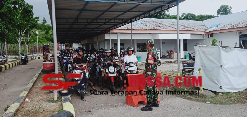 Personel Piket Koramil 1627-02/Pantai Baru melaksanakan kegiatan pemantauan aktivitas pengangkutan kendaraan, penumpang, dan barang di Pelabuhan...