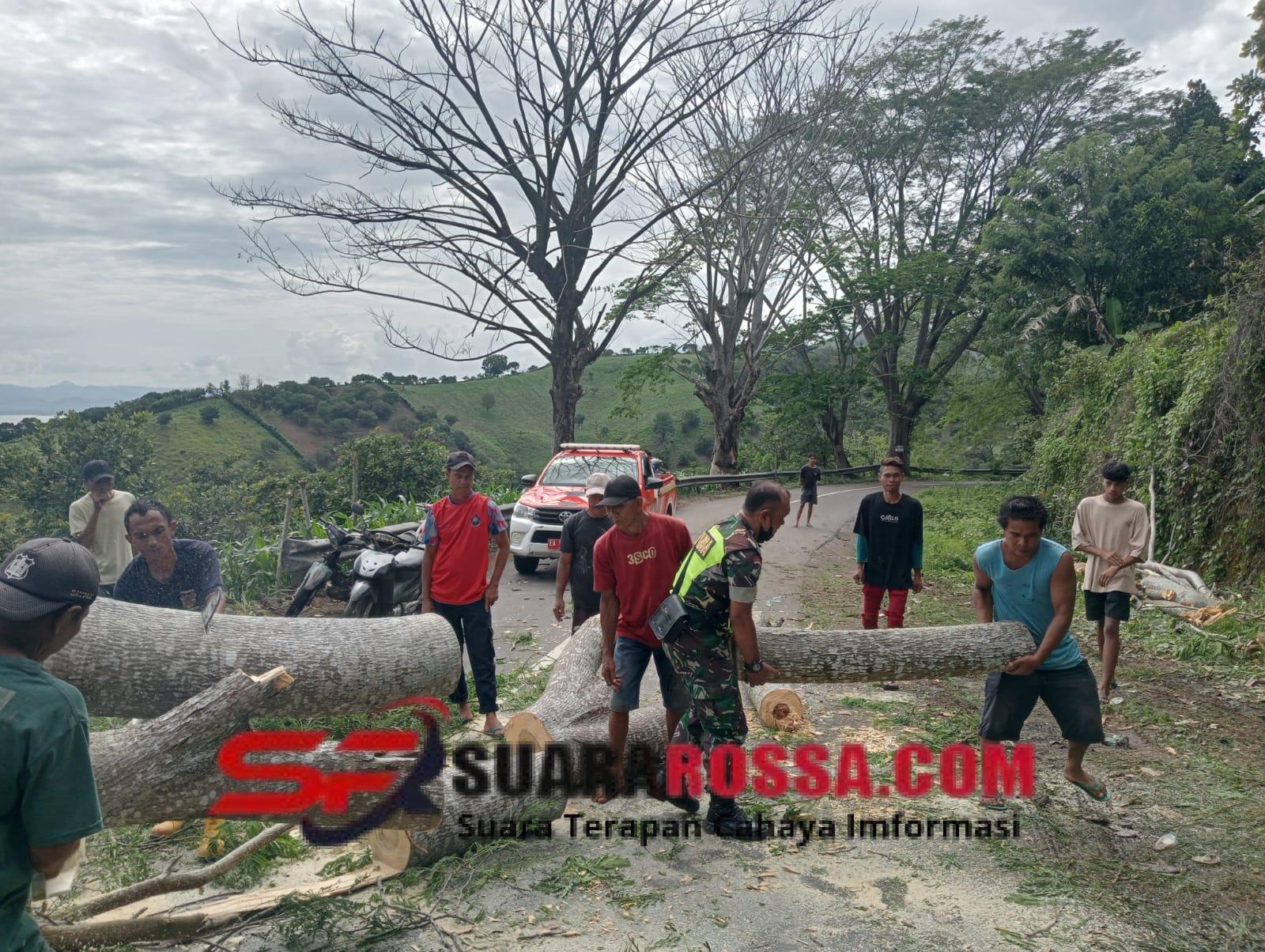 Hujan deras disertai angin kencang melanda wilayah tersebut yang mengakibatkan sebuah pohon sengon tumbang dan menutup jalan. Mendapat laporan dari lurah setempat, Babinsa dan Damkar segera menuju lokasi. Pukul 14.20 Wita, tim berhasil mengevakuasi pohon tumbang dan membersihkan jalan sehingga arus lalu lintas kembali lancar pada pukul 15.30 Wita.
