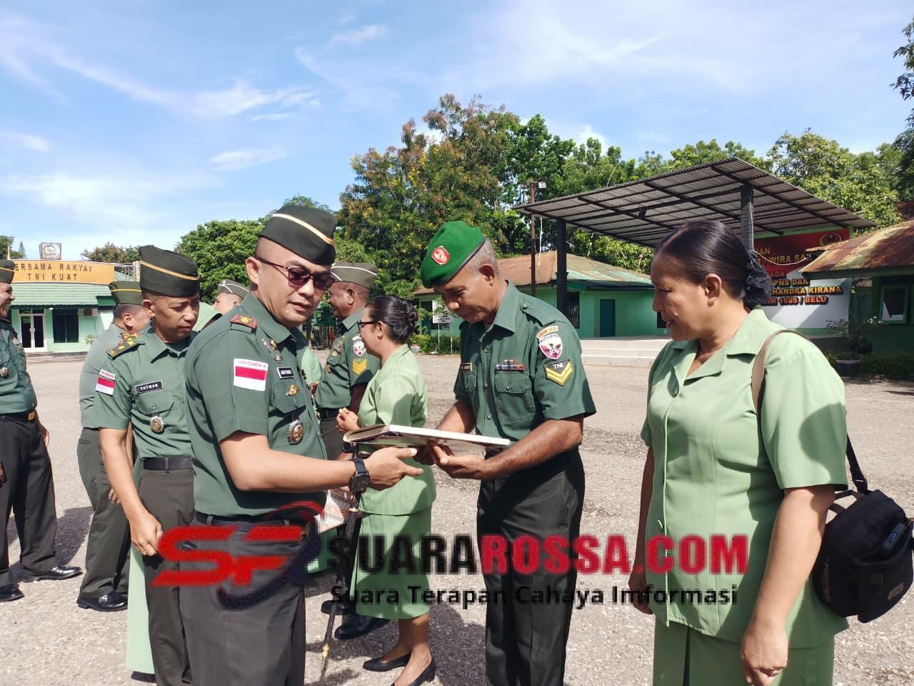 KODIM 1605/BELU, Komandan Kodim 1605/Belu Letkol Arh Andi Yunus, S.I.P memimpin acara corps raport wisuda purna tugas anggota TNI dan PNS Kodim 1605/Belu yang berlangsung di Lapangan Apel Makodim 1605/Belu, Kabupaten Belu NTT, Senin (5/1/2026).