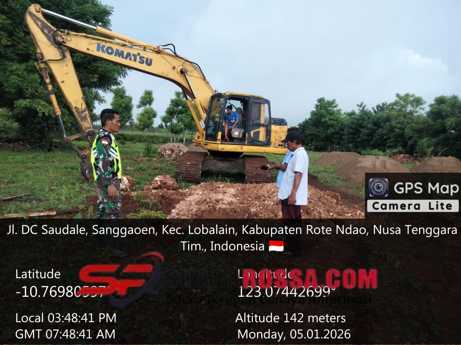 Babinsa Serka Ishak Manafe menyampaikan bahwa kehadirannya bertujuan untuk memastikan kegiatan pembangunan berjalan tertib, aman, dan sesuai rencana, serta sebagai bentuk pendampingan TNI kepada masyarakat.