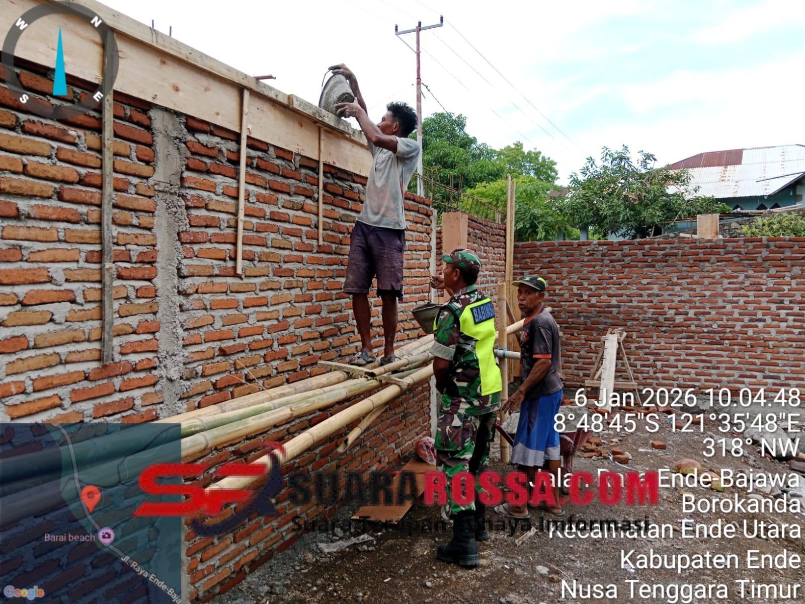 Ende – Babinsa Desa Raterua, Pelda Mursalim Mandar, anggota Koramil jajaran Kodim 1602/Ende, melaksanakan pemantauan perkembangan pembangunan KDKMP (Kawasan Desa Kreatif Mandiri Pangan) yang berlokasi di Desa Raterua, Kecamatan Ende Utara, Kabupaten Ende, pada Senin (05/01/2026).