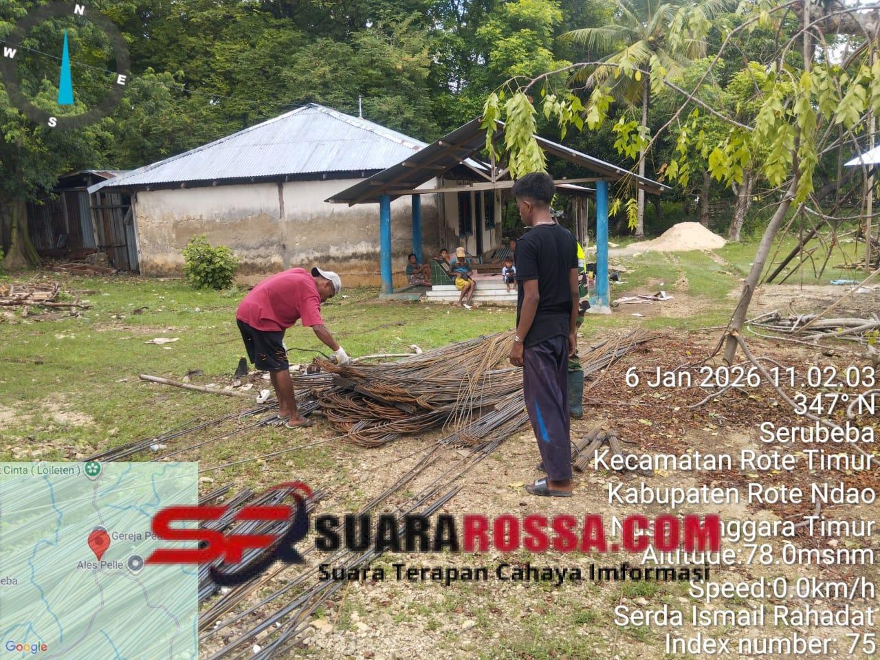 Babinsa Koramil 1627-02/Pantai Timur, Serda Ismail Rahadat, melaksanakan kegiatan pendampingan pekerjaan pembangunan KDKMP di Desa Serubeba, Kecamatan Pantai Timur, Kabupaten Rote Ndao, Selasa (6/1/2026).