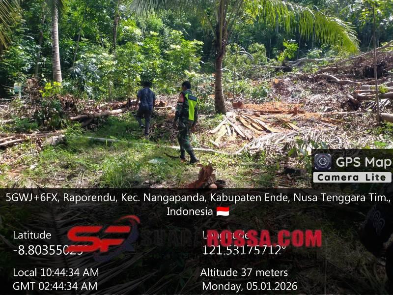 Ende, – Babinsa Koramil 1602-01/Ende, Kopda M. Saleh H., melaksanakan kegiatan Komunikasi Sosial (Komsos) dan Pengamanan Wilayah (Pamwil) dalam rangka pengecekan lokasi pembangunan Koperasi Desa Koperasi Merah Putih (KDKMP) di Dusun Numba Raba Timur, Desa Raporendu, Kecamatan Nangapanda, Kabupaten Ende, Selasa (6/1/2026) pagi.