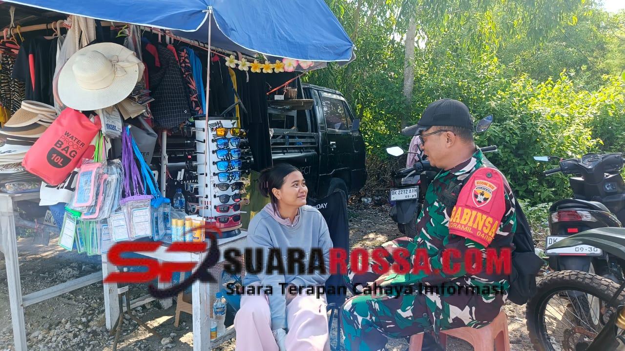 Klungkung,- Upaya untuk memperkuat silahturahmi dan kemanunggalan TNI rakyat, Babinsa Ped Koramil 1610-04/Nusa Penida Serda Sang Made Oka menggelar kegiatan Komunikasi Sosial ( Komsos ) bersama ibu Tutik, salah satu warga yang berprofesi sebagai pedagang aksesoris Bali di area Pelabuhan banjar Nyuh, Desa Ped, Kecamatan Nusa Penida, Kabupaten Klungkung, Selasa ( 06/01/26 ).
