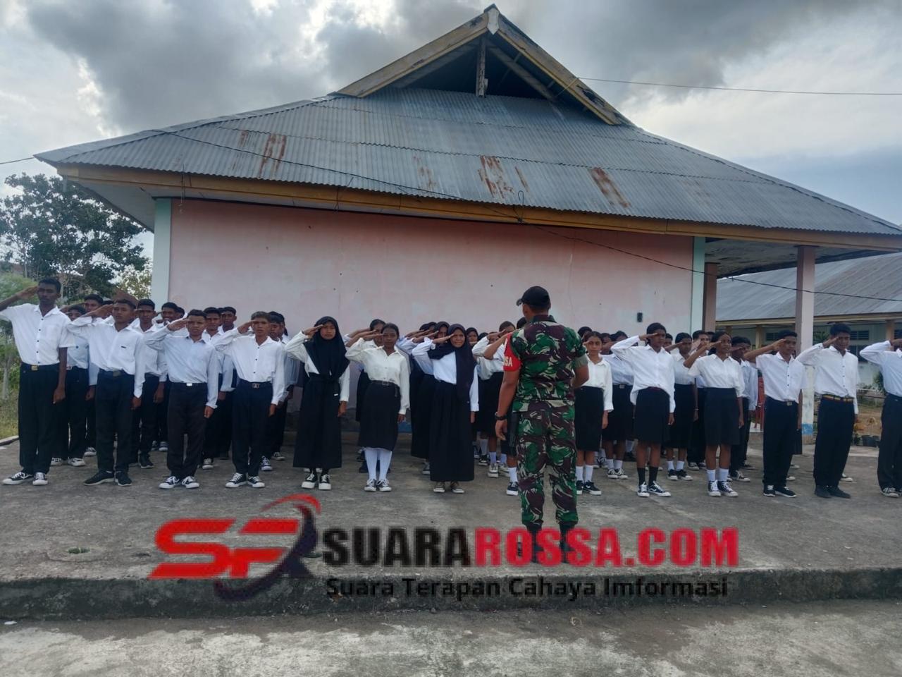 Lembata – Babinsa Koramil 1624-07/Nagawutung, Kopda I Kd Ari Artha S, melaksanakan kegiatan pembinaan dan pembekalan kepada generasi muda melalui pemberian materi Peraturan Baris Berbaris (PBB) bersama siswa-siswi SMA Negeri 1 Loang.
