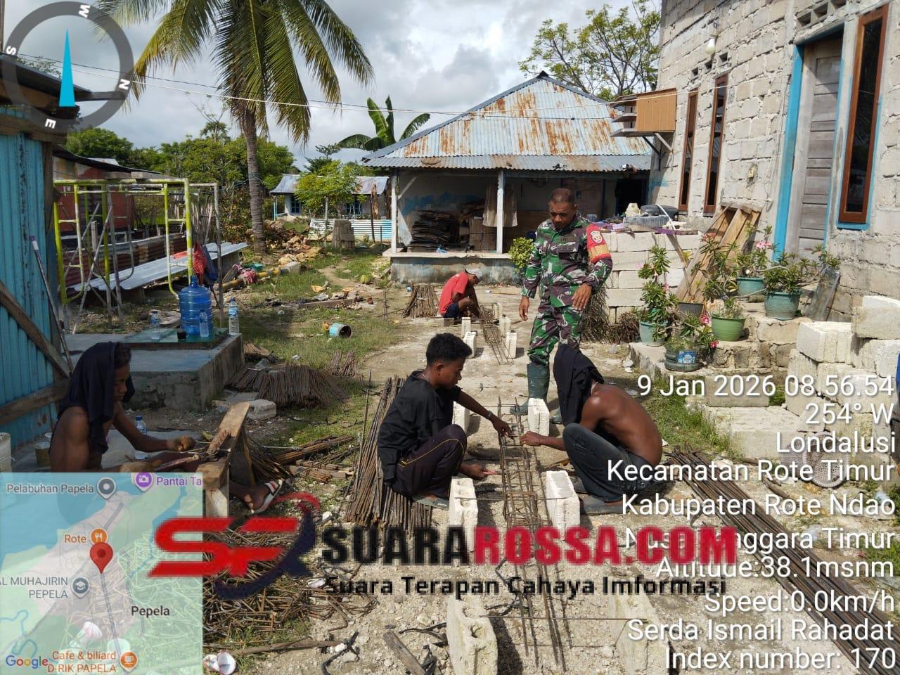 Babinsa Koramil 1627-02/Pantai Baru, Kodim 1627/Rote Ndao, melaksanakan kegiatan pendampingan pembangunan KDKMP di wilayah binaan, Kamis (9/1/2026). Kegiatan tersebut dilaksanakan oleh Serda Ismail Rahadat bertempat di lokasi KDKMP Desa Serubeba, Kecamatan Rote Timur, Kabupaten Rote Ndao.