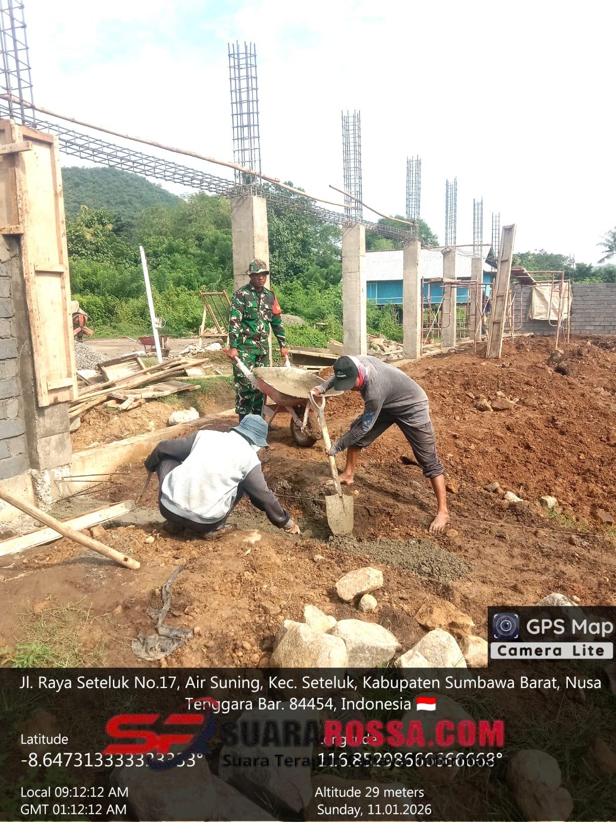 Sumbawa Barat, NTB – Dalam rangka mendukung program pemberdayaan ekonomi masyarakat desa, Babinsa Desa Air Suning, Kecamatan Seteluk, Kabupaten Sumbawa Barat, Sertu Ruslin, melaksanakan kegiatan pendampingan dan pengawasan pembangunan Koperasi Desa/Kelurahan Merah Putih (KDKMP), Minggu (11/01/2026).
