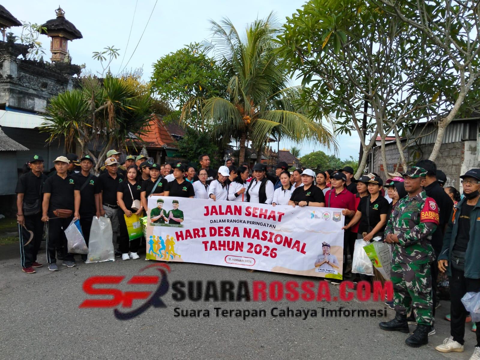 Kegiatan yang berlangsung meriah ini dilaksanakan dalam rangka memperingati Hari Desa Nasional (Hardesnas), Hari Kulkul Posyandu, serta Hari PKK Tahun 2026. Acara diawali dengan jalan santai bersama yang diikuti oleh sekitar 300 warga, kemudian dilanjutkan dengan aksi bersih-bersih lingkungan sebagai bentuk edukasi pola hidup sehat.