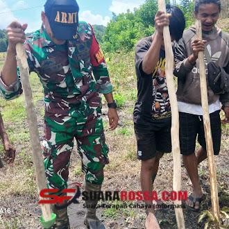 NTT – Sumba Timur. Babinsa Koramil 04/Tabundung, Kodim 1601/Sumba Timur,Pratu Denis Nderu Peta, melaksanakan kegiatan pendampingan ketahanan pangan (Hanpangan) berupa tanam padi di kebun milik masyarakat Desa Wudipandak, Kecamatan Tabundung, Kabupaten Sumba Timur,pada Senin (12/01/2026).