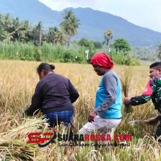 NTT-SIKKA. Babinsa Koramil 1603-02/Talibura Kodim 1603/Sikka, Koptu Hendrikus Boliwerang, melaksanakan kegiatan panen padi bersama masyarakat di Desa Nebe, Kecamatan Talibura, Kabupaten Sikka, Senin (12/01/2026).