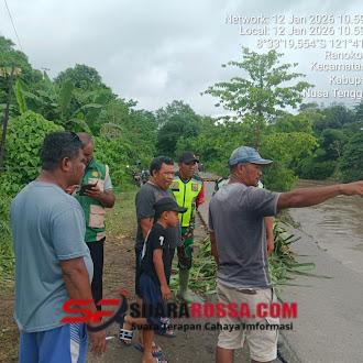 Ende – Batuud Koramil 1602-03/Detusoko, Serma Paulus Umbu Pati, bersama Babinsa Desa Wewaria, Serda Fransiskus Moa, melaksanakan kegiatan Pengamanan Wilayah (Pamwil), Komunikasi Sosial (Komsos), serta monitoring kondisi jalan putus dan genangan air di Dusun Ma’u Meri dan Dusun Paupanda 2, Desa Wewaria, Kecamatan Wewaria, Kabupaten Ende, Senin (12/01/2026) pukul 11.00 Wita.