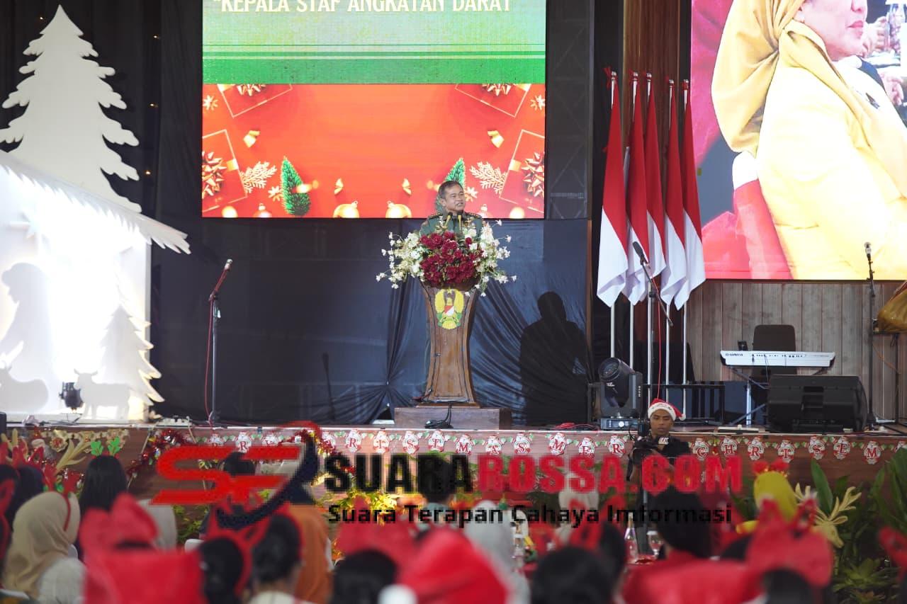 Sementara itu, KASAD Jenderal TNI Maruli Simanjuntak dalam sambutannya mengucapkan Selamat Hari Natal dan Tahun Baru kepada seluruh prajurit, ASN TNI AD, serta masyarakat NTT. Ia mengaku sangat mengapresiasi tema Natal yang diangkat, khususnya kata “menghadirkan” yang bermakna nyata dalam tindakan.