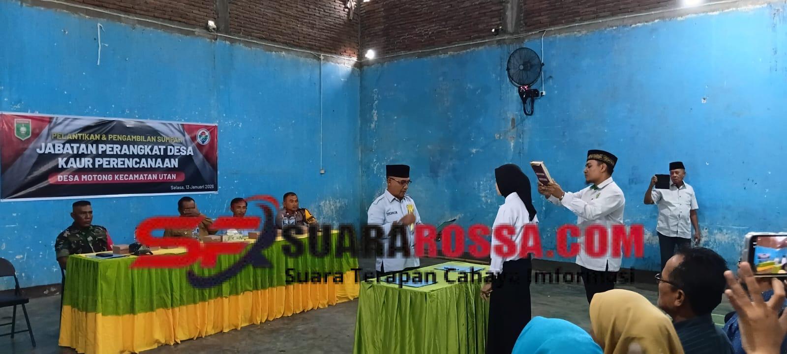 Utan, Sumbawa — Sebagai bentuk dukungan terhadap tertib administrasi dan pemerintahan desa, Babinsa Desa Motong Koramil 1607-09/Utan, Sertu Sulaeman, menghadiri acara Pelantikan dan Pengambilan Sumpah/Janji Perangkat Desa Motong yang dilaksanakan di Aula Kantor Desa Motong, Kecamatan Utan, Selasa (13/01/2026).